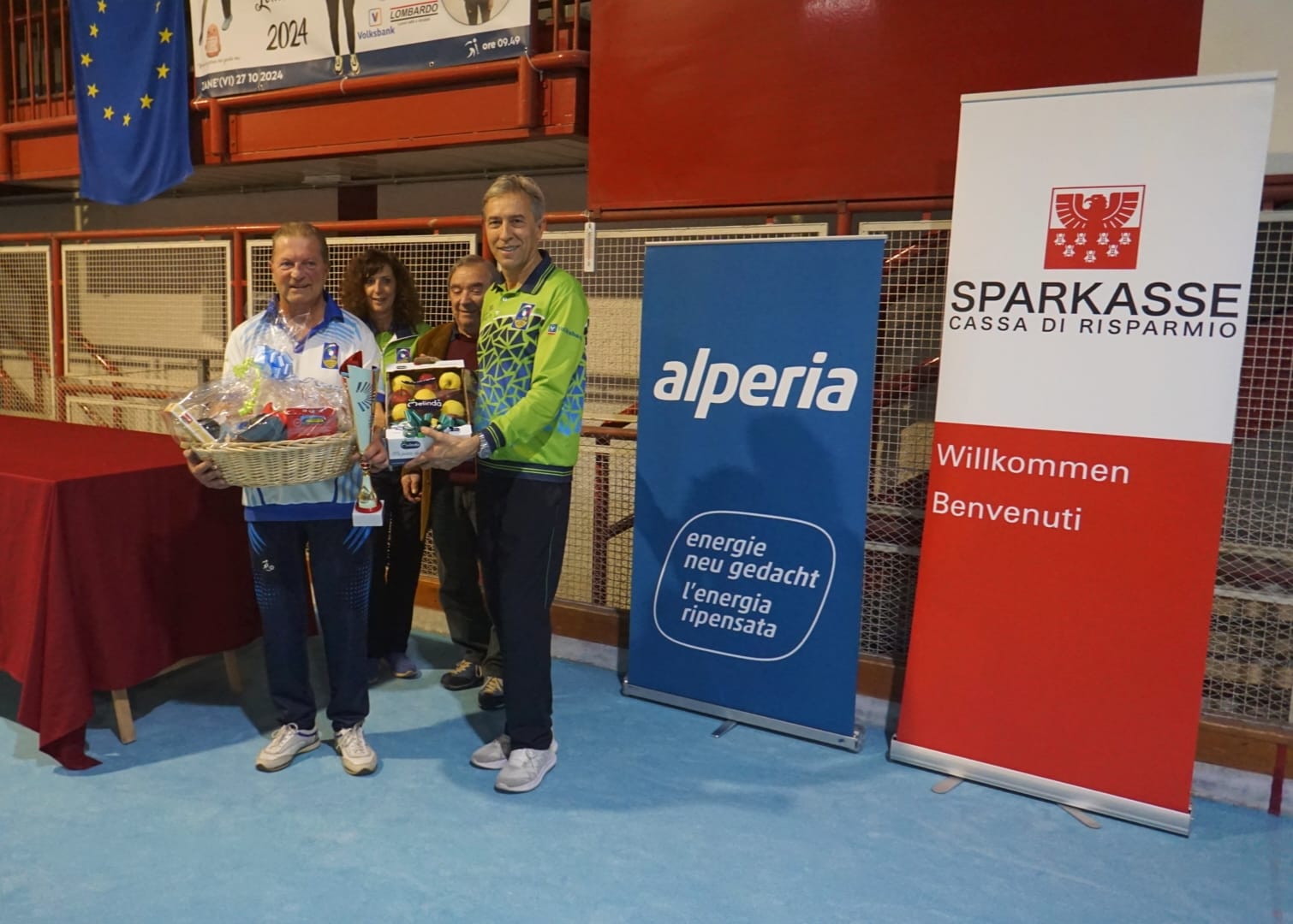 BOLZANO. Andrea Pirani ( Bocc. Olimpia - TV ) vince il 1° Trofeo "Assicurazione Allianz", gara regionale organizzata dalla Dolomiti ( presieduta da Alberto Conci ). Diretta dal Sig. Salmaso Alessandro, la competizione ha coinvolto ben 106 Atleti provenienti da tutto il Nord Italia per un totale di 15 Gironi. Secondo posto per Roberto Cavada ( Bocc. San Sebastiano - VE ), terzo Nicolussi Fabio ( Bocc. LA Sportiva - AP ). Soddisfatta anche la Delegata Federale sig.ra Tatiana Menegolo per l’ottima riuscita della manifestazione sportiva. Prima dell'inizio della gara sono state omaggiate le 2 atlete che hanno ottenuto strepitosi risultati ai campionati italiani a Zanè ( VI ), Giada Lombardo la vincitrice del titolo italiano individuale nella categoria C e Cristina Paruta medaglia di bronzo nell'individuale categoria B.