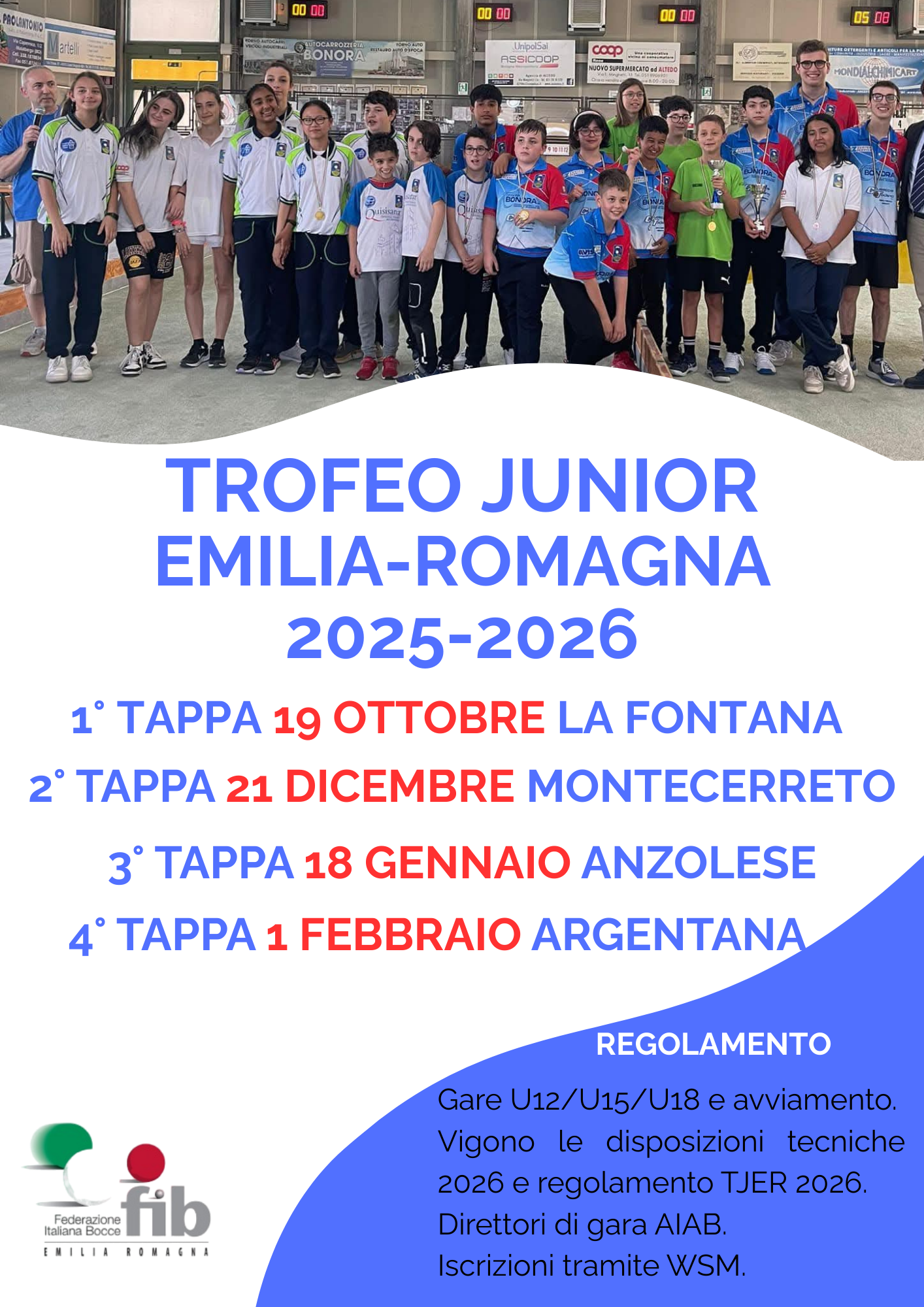 14 Ottobre Sorteggio 1^ Tappa TJER 2026 - 19 Ottobre 2025 Bocciofila La Fontana CONDIVIDI SUI TUOI SOCIAL