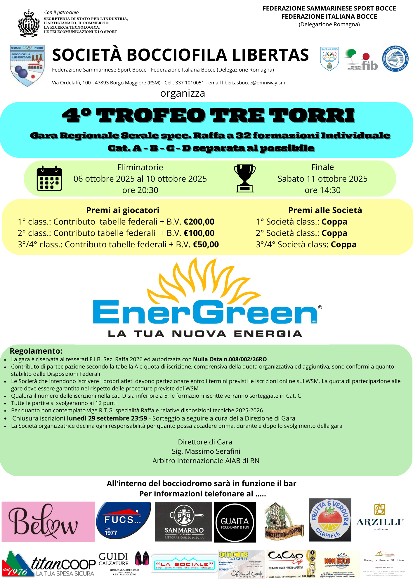 06/10/2025 - 11/10/2025 - Società Bocciofila Libertas (MO) - 4° Trofeo Tre Torri