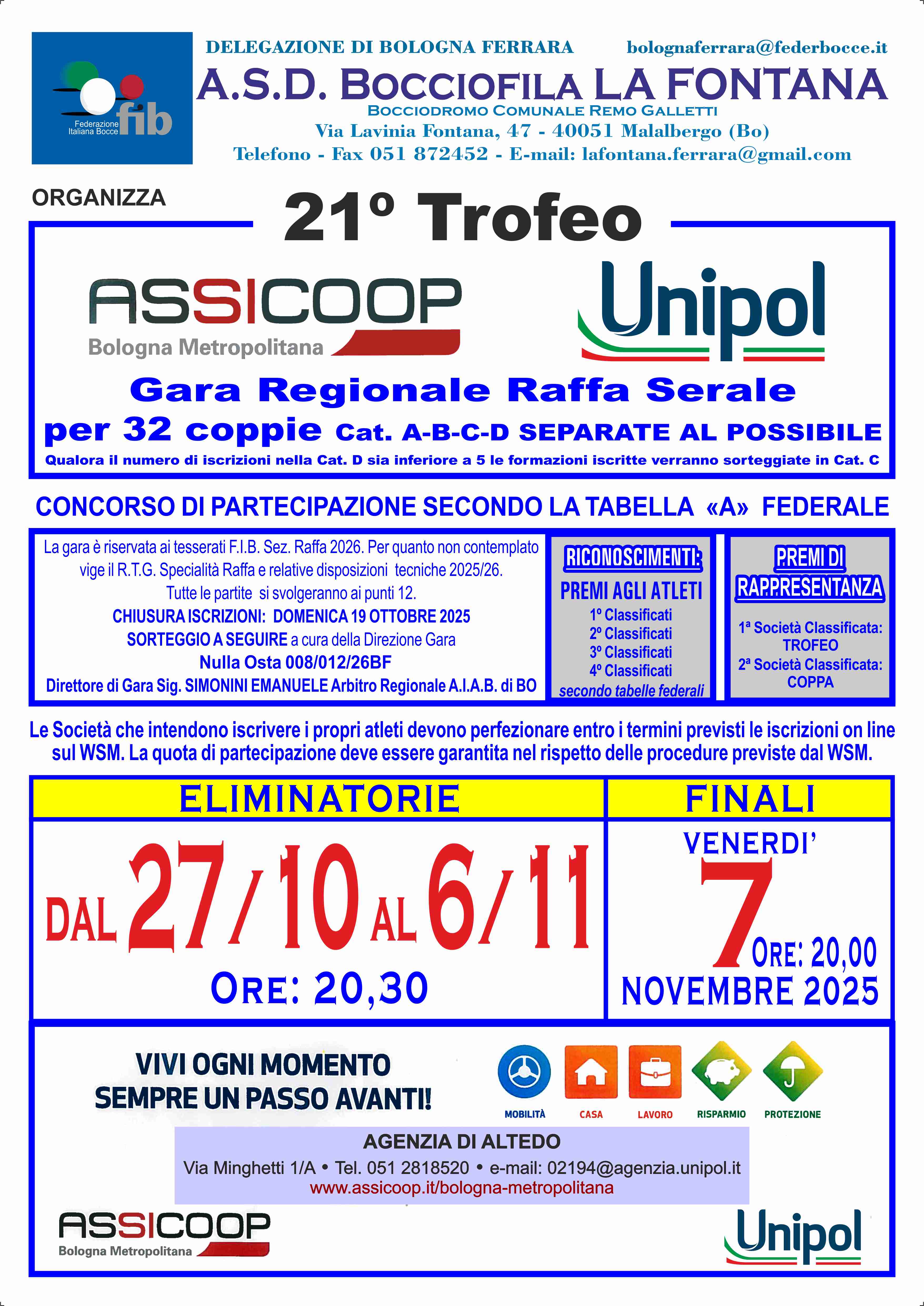 27/10/2025 - 07/11/2025 - Bocciofila La Fontana - 21° Trofeo Unipol Assicoop 2025