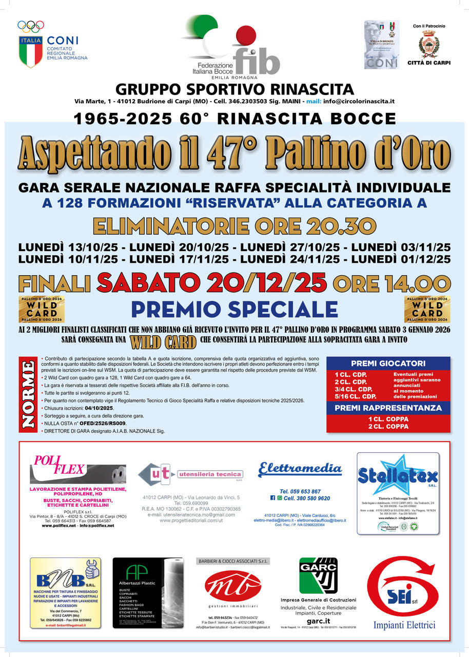 13/10/2025 - 20/12/2025- Bocciofila Rinascita - Aspettando il 47° Pallino d'Oro