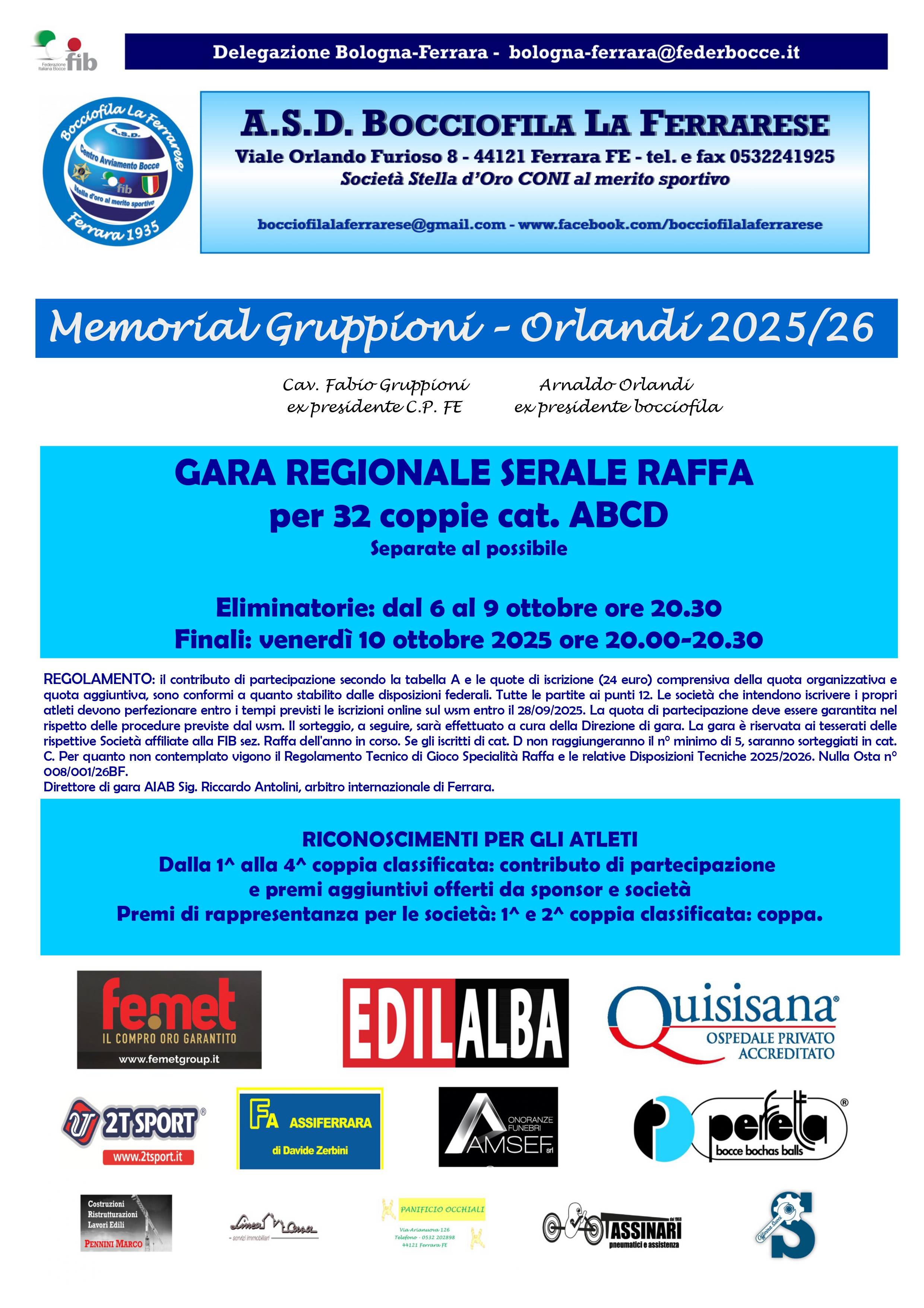 06/10/2025 - 10/10/2025 - Società Bocciofila LA Ferrarese (FE) - Memorial Gruppioni-Orlandi 2025/26