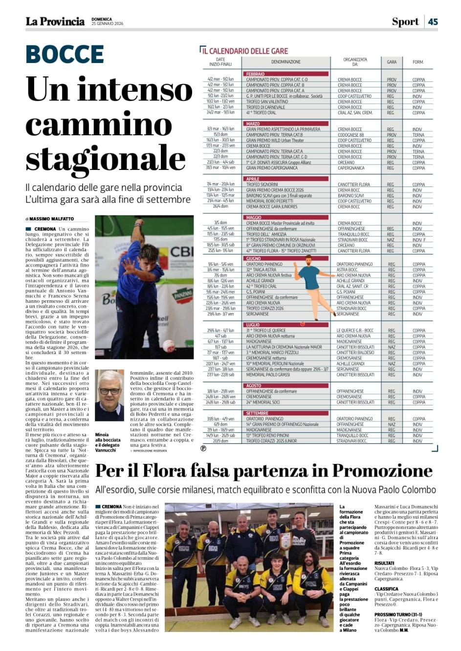 26 Gennaio Sulla "Provincia di Cremona" un'intera pagina dedicata alla stagione boccistica CONDIVIDI SUI TUOI SOCIAL