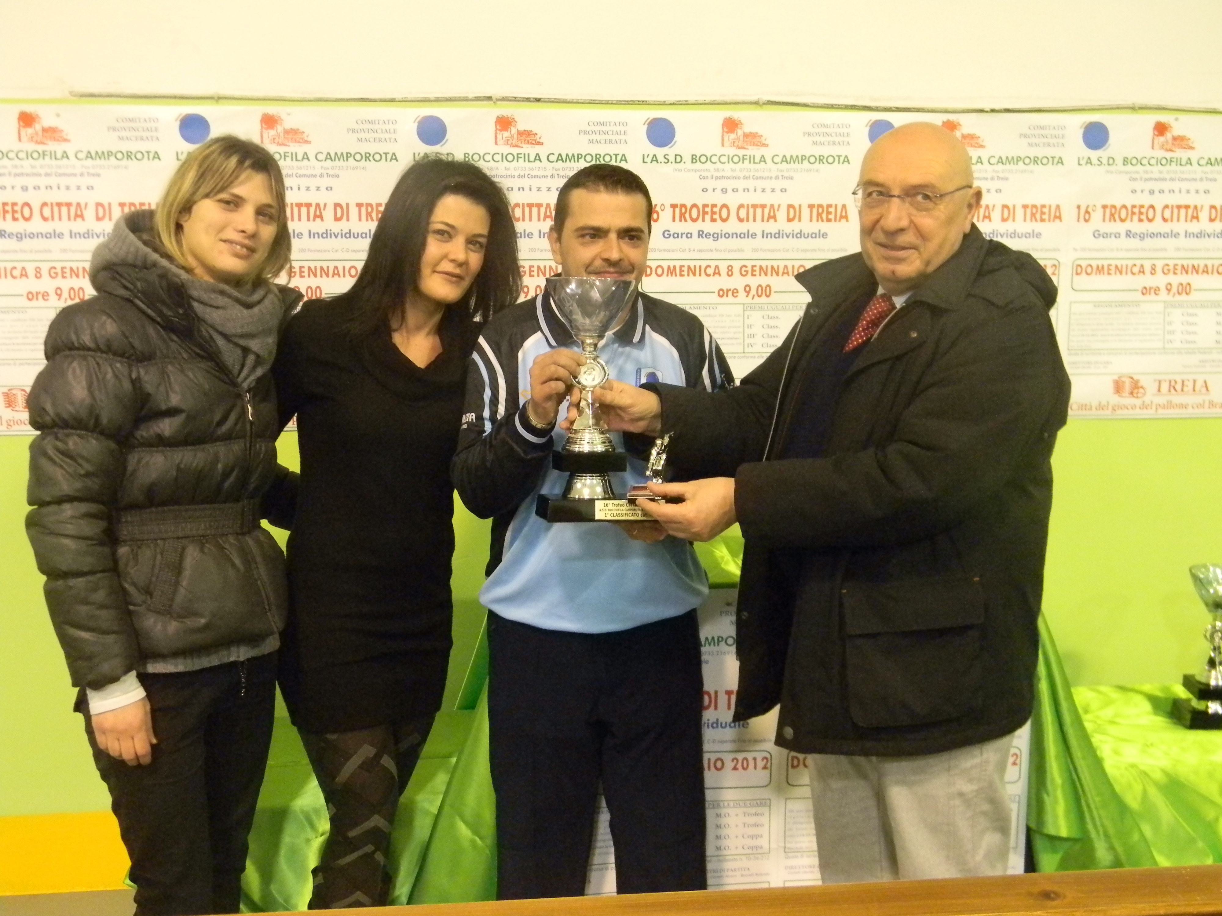 La gara è terminata alle ore 21,35 con il punteggio di 12-9 per il vincitore. Partita molto bella e con molto agonismo, lottata fino all'ultimo tiro. Molto pubblico ha assistito tutte le fasi finali all'interno del bocciodromo Camporota. Un elogio va al direttivo e tutti i soci che hanno contribuito al rinnovo dell'impianto stesso. Presenti alle premiazioni il sindaco di Treia Sig Luigi SANTALUCIA, l'ass. all'ambiente Luana MORETTI, il vice pres. fib del comitato di Macerata Graziano GATTARI.