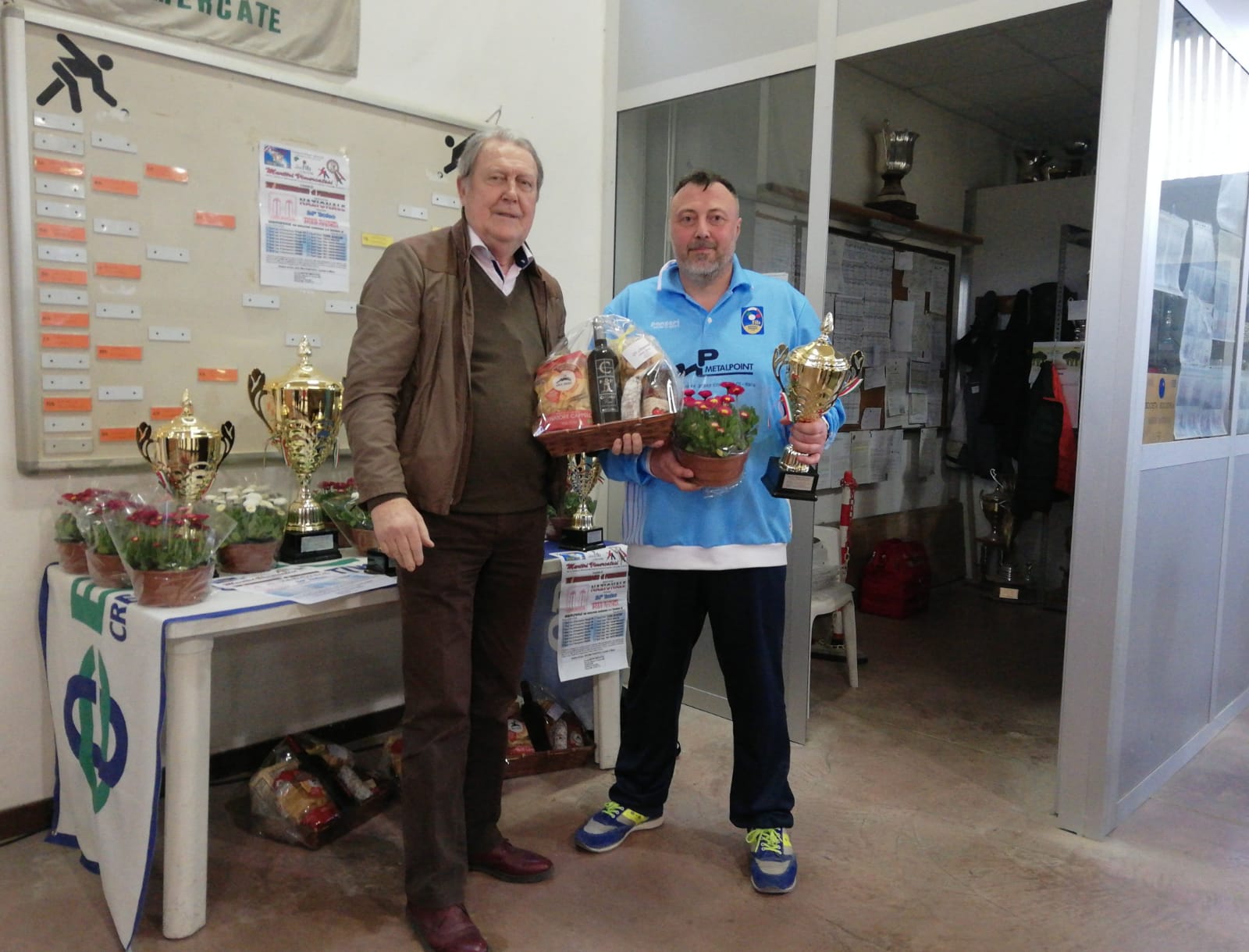 Sotto le premiazioni dei finalisti con il presidente della bocciofila Giambelli e il presidente del circolo Rinascita Della Corte