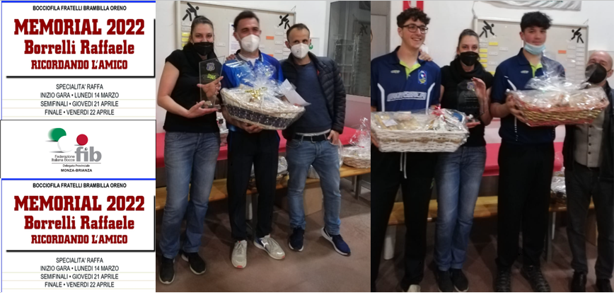 Vimercate 22 aprile: Si e' chiuso questa sera il 1° memorial Borrelli disputato sulle corsie del bocciodromo Comunale di Vimercate e organizzato dalla Bocciofila Fratelli Brambilla. A vincere sono stati Proserpio Paolo (Sperone) nella categoria A e i beniamini di casa Penati Andrea e Pasqualini Tommaso nella Categoria BC.