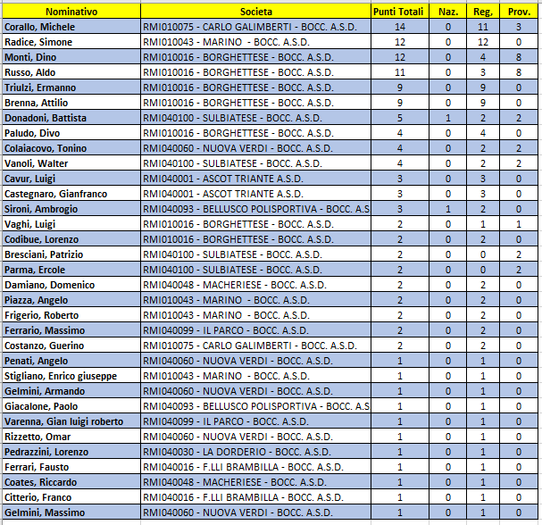 Di seguito l'elenco dei giocatori che hanno conseguito dei punti nella corrente stagione. I punteggi, e tutte le informazioni sono estratti dal WSM e sono aggiornati alla data del 31 ottobre 2021