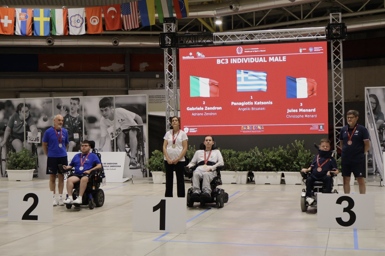 Per l'Italia nel BC3 il nostro Gabriele Zendron dopo aver superato in semifinale il francese Jules Menard, atleta di ottimo livello, ed averlo battuto per 5 a 1, si è ritrovato in finale l'atleta greco Panagiotis Katsonis, una bella gara tra due grandi atleti ha permesso a Katsoni di vincere la medaglia d’oro battendo il nostro atleta, vincitore nel 2024, per 5 a 1; nel BC3 femminile finale tra la Svezia con Maria Bjurstrom e la Francia con Mathilde Troude, vince l'oro la frances Troude per 5 a 4.