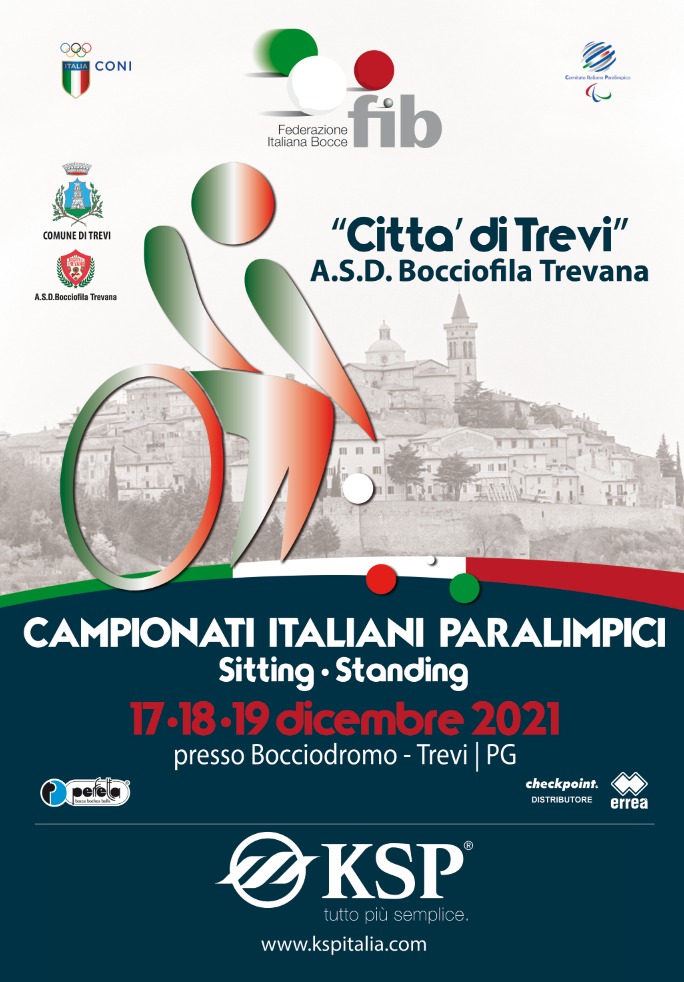 La lunga stagione sportiva della Federazione Italiana Bocce termina nel fine settimana tra venerdì 17 e domenica 19 dicembre 2021, quando a Trevi, in provincia di Perugia, si terranno i Campionati Italiani di bocce paralimpiche, Sitting e Standing. Si assegneranno TRE titoli tricolori: Individuale Sitting, Coppia Sitting e Individuale Standing.