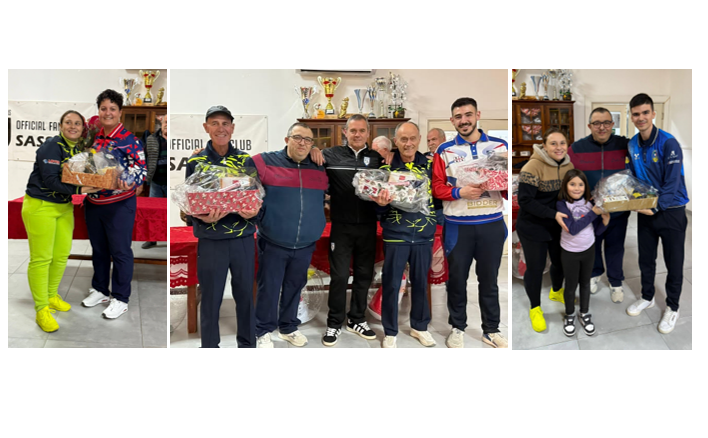 16 Dicembre Natale con le Bocce, tre podi alla Nuova Boccia d’Oro: Sara Ara nella femminile, Alessio Frongia nel tiro di precisione, Giovanni Salaris, Francesco Salaris ed Emmanuele Pinna nella terna CONDIVIDI SUI TUOI SOCIAL