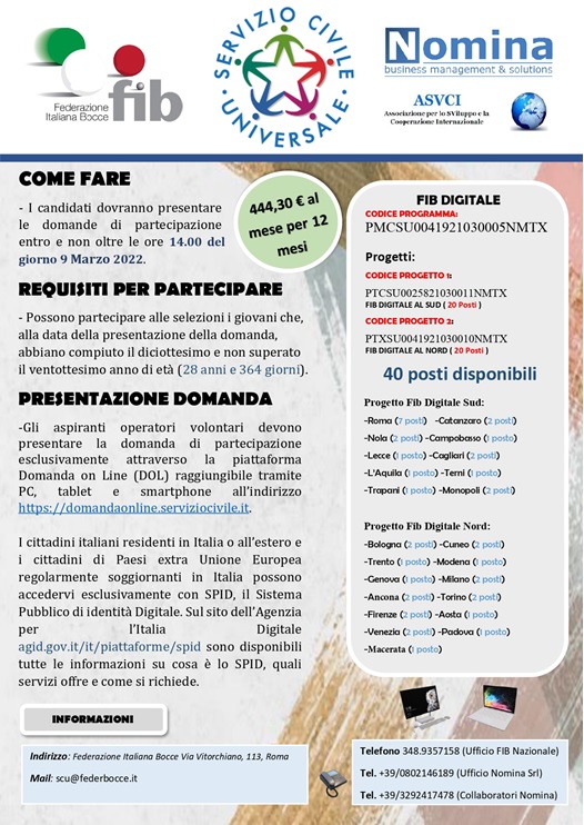 PROROGA BANDO VOLONTARI SERVIZIO CIVILE AL 9 MARZO