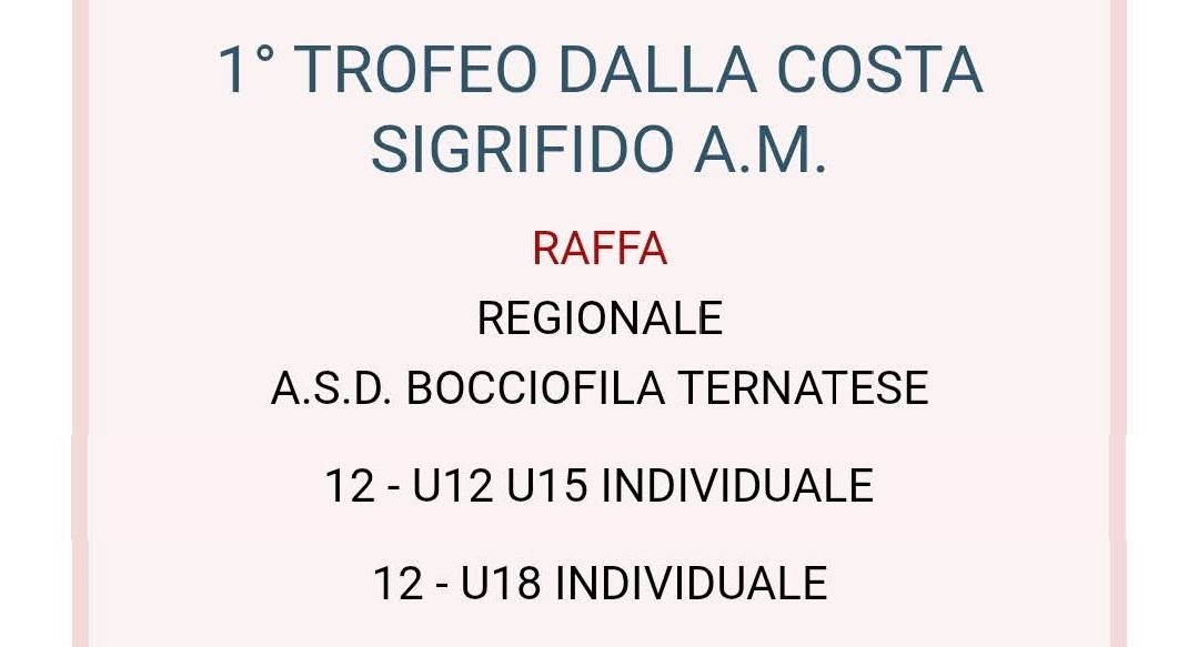 21 Ottobre Manifesti: Bocciofila Ternatese "1° Trofeo Dalla Costa Sigfrido a.m." CONDIVIDI SUI TUOI SOCIAL