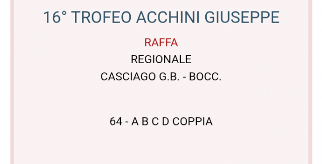 18 Aprile Risultati: Daverio (Va) 17 aprile 2026 "16°Trofeo Acchini Giuseppe" CONDIVIDI SUI TUOI SOCIAL