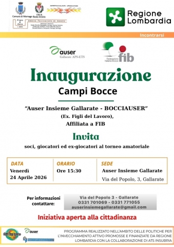 08 Aprile Riapertura dei campi da bocce di "Auser Insieme Gallarate – BOCCIAUSER” CONDIVIDI SUI TUOI SOCIAL