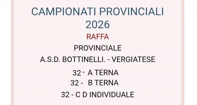 18 Dicembre Risultati: Vergiate (VA) 17 dicembre 2025 "Campionati Provinciali FIB Varese 2026 Terna cat. A, Terna cat. B, Individuale cat. CD" CONDIVIDI SUI TUOI SOCIAL